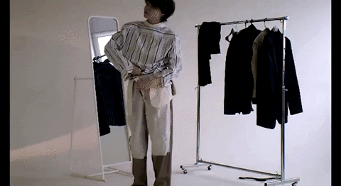 Вы когда-нибудь задумываетесь над действиями, которые вы совершаете прежде чем надеть вещь? Например, как обнажается подкладка ваших брюк, когда вы их снимаете, или какую руку вы просовываете в вашу водолазку первой — левую или правую? Все это наводит меня на мысли о том, как человек эксплуатирует вещь, и какие этапы она проходит, прежде чем быть надетой, или после того как она была надета.