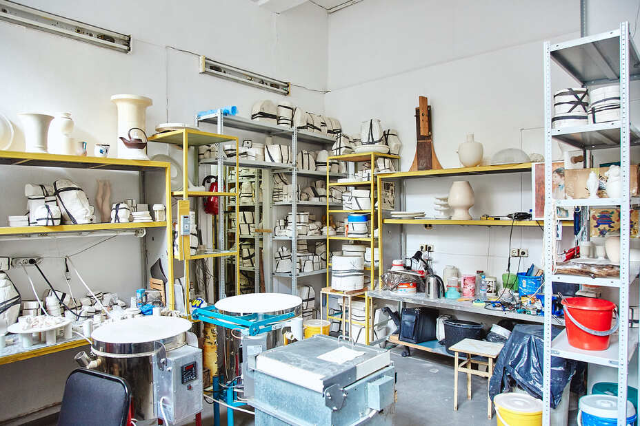 В мастерской фарфора каждый студент может на практике увидеть, как происходит процесс литья, а также попробовать себя в качестве фарфориста под руководством опытного мастера или самостоятельно поработать с готовыми формами. В мастерской есть возможность для работы с полным циклом изготовления фарфорового изделия — от лепки модели из скульптурного пластилина до заливки фарфора, обжига и росписи. Мастерская оснащена печью, сушильными шкафами, гипсомодельными станками, а также красками, глазурью, пигментами. Кроме того, для удобства студентов выставлены учебные формы и модели. Школа дизайна постоянно работает над увеличением количества мастерских.